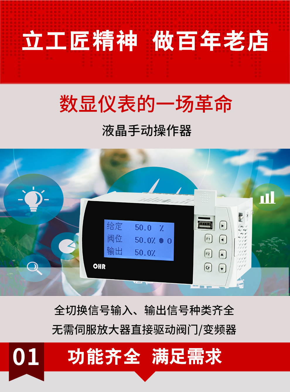 虹潤公司是專業(yè)生產(chǎn)智能手操器的國家專精特新“小巨人”企業(yè),生產(chǎn)的液晶手動操作器,具有全切換信號輸入,通道之間相互隔離,手自動無擾動切換配上位機(jī)管理軟件等特點。產(chǎn)品獲得閥門自動手動無擾動操作控制方法及裝置、模糊PID控制儀及控制方法、移相觸發(fā)控制器等3項國家標(biāo)準(zhǔn),主持起草工業(yè)過程控制系統(tǒng)用模擬輸入兩位或多位輸出儀表、流程工業(yè)中電氣/儀表和控制系統(tǒng)的試車等2項國家標(biāo)準(zhǔn),以及通信系統(tǒng)多通道數(shù)據(jù)采集控制終端規(guī)范軍用標(biāo)準(zhǔn),參與國際5G標(biāo)準(zhǔn)制定,取得手動操作器等3項相關(guān)軟件著作權(quán)。產(chǎn)品廣泛應(yīng)用于電力、石化、冶金、化工、造紙、食品、輕工、制藥、熱處理、水處理、機(jī)械配套等各種工業(yè)現(xiàn)場。