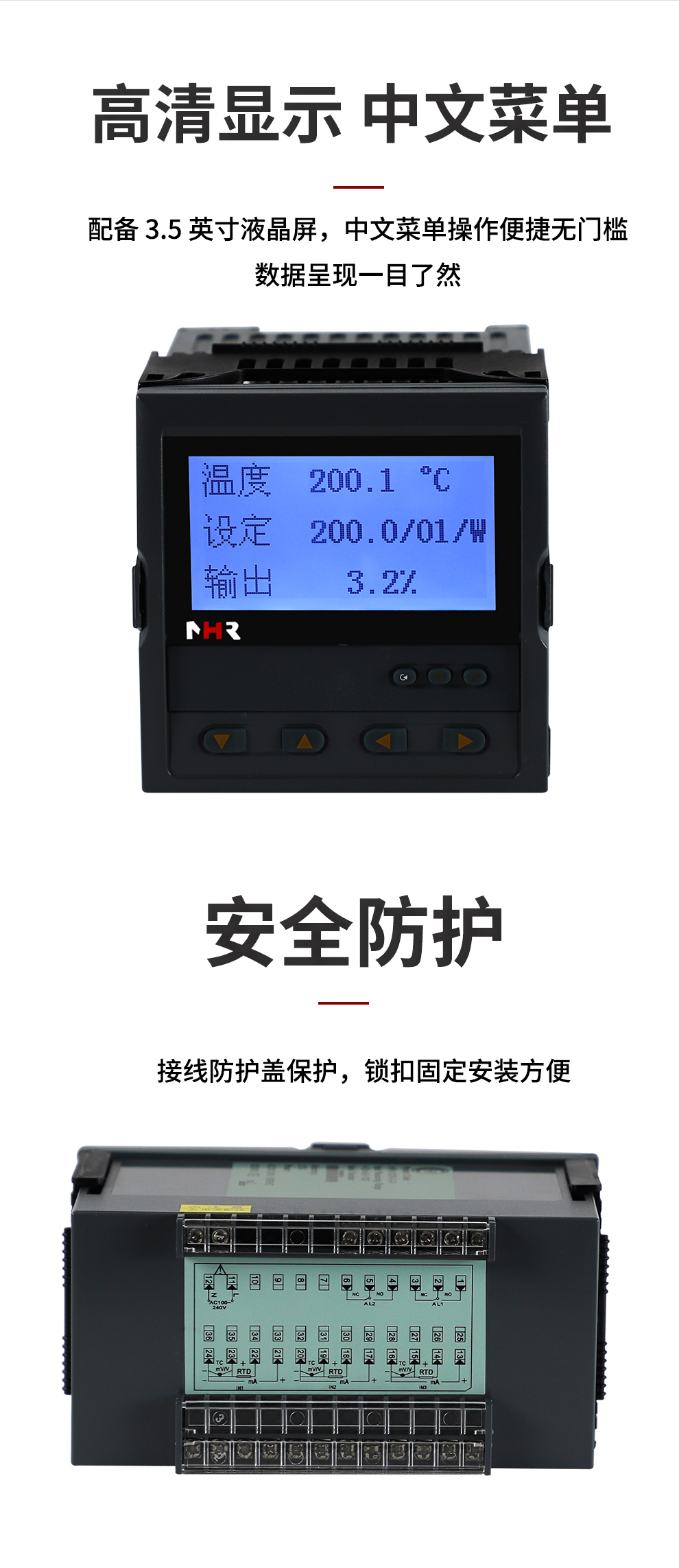 虹潤(rùn)公司是專業(yè)生產(chǎn)溫控器的國(guó)家專精特新“小巨人”企業(yè)。生產(chǎn)的“傻瓜式”液晶人工智能溫控器,具有傻瓜式操作,真正人工智能算式,多種輸出類型,控制精度達(dá)士0.1°C,支持RS485/RS232通訊輸出等特點(diǎn)。產(chǎn)品獲得智能化控制器、人工智能調(diào)節(jié)器及調(diào)節(jié)方法、模糊PID控制儀及控制方法、一種平板無紙記錄儀、巡回檢測(cè)顯示方法及裝置等5項(xiàng)國(guó)家發(fā)明專利,主持起草物聯(lián)網(wǎng)智能記錄儀表通用技術(shù)條件、物聯(lián)網(wǎng)智能溫度儀表通用技術(shù)條件、工業(yè)過程測(cè)量和控制系統(tǒng)用智能調(diào)節(jié)器等3項(xiàng)國(guó)家標(biāo)準(zhǔn),通信系統(tǒng)多通道數(shù)據(jù)采集控制終端規(guī)范軍用標(biāo)準(zhǔn),以及空間數(shù)據(jù)與信息數(shù)據(jù)傳輸系統(tǒng)等2項(xiàng)航天標(biāo)準(zhǔn)。參與國(guó)際5G標(biāo)準(zhǔn)制定,取得液晶PID調(diào)節(jié)控制記錄儀等4項(xiàng)相關(guān)軟件著作權(quán)。產(chǎn)品廣泛應(yīng)用于電石化、工業(yè)爐、試驗(yàn)設(shè)備、注塑機(jī)械、包裝機(jī)械等需要對(duì)現(xiàn)場(chǎng)溫度進(jìn)行監(jiān)測(cè)控制的行業(yè)。